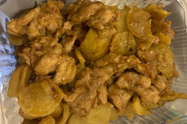 /Свински шол, пресни картофи, соев сос, чесън/