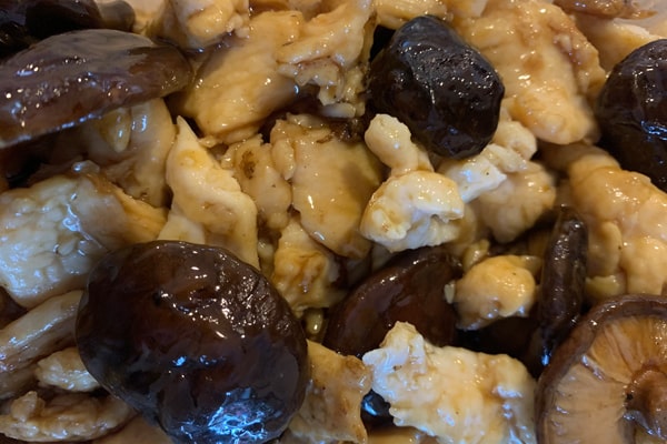 /пилешко филе, ароматни гъби, соев сос, чесън/